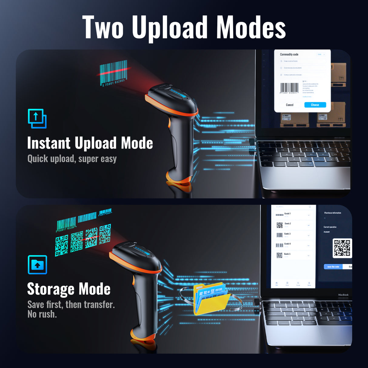 The D5100 barcode scanner offers the flexibility of both storage mode and instant upload mode. Select the mode that best suits your needs.
