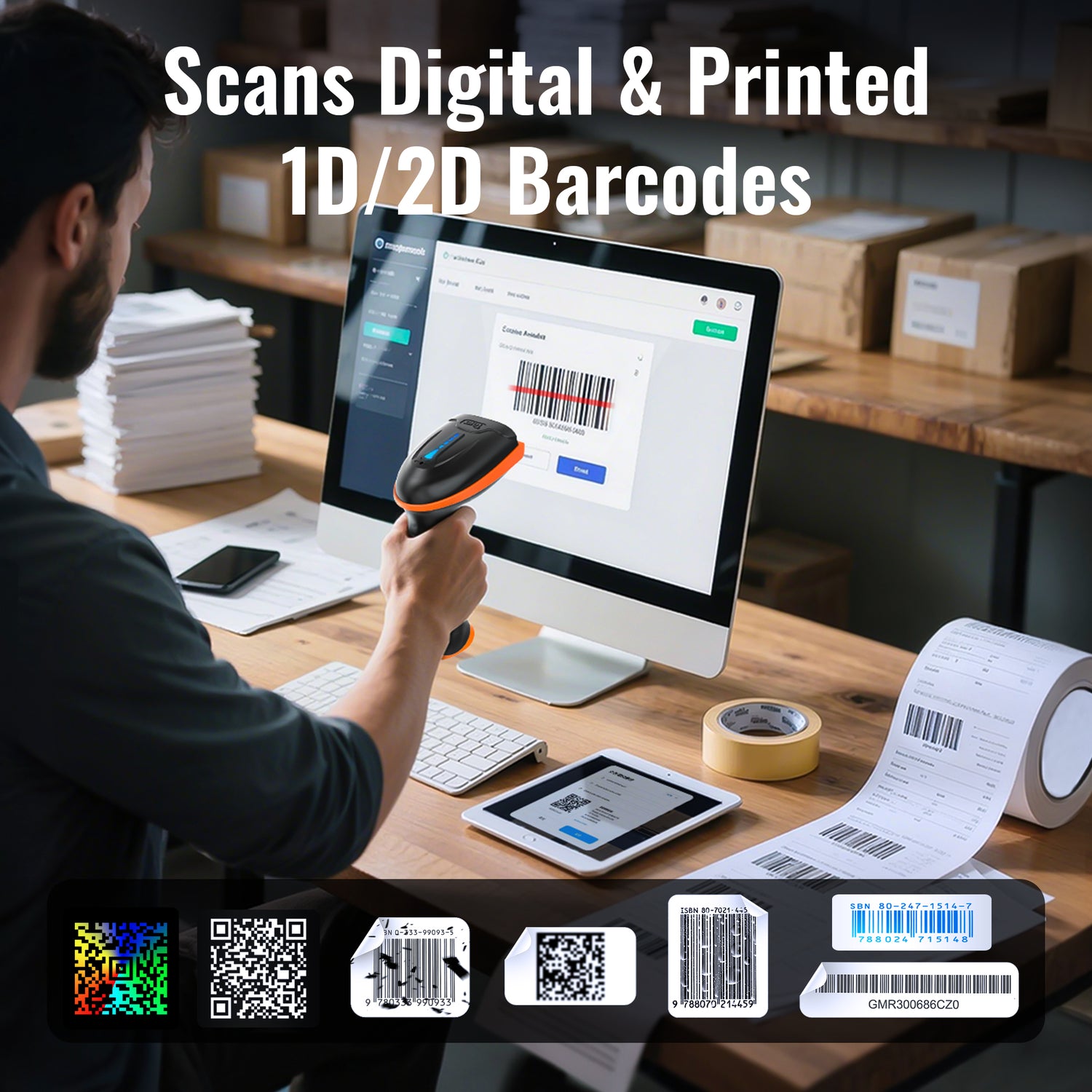 It can scan barcodes on electronic devices such as smartphones, tablets, or computer screens, or physical barcodes printed on labels, packaging.